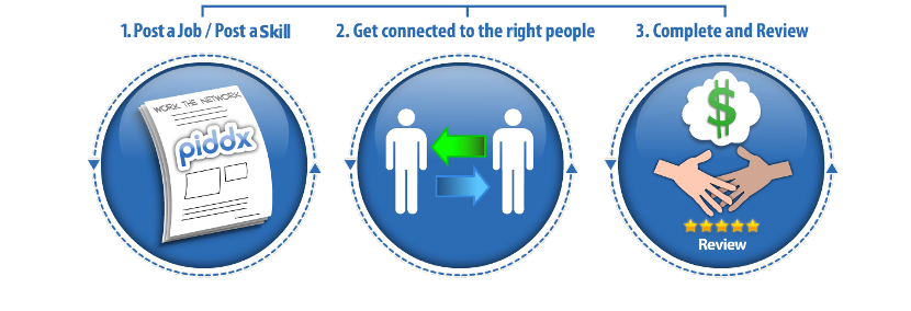 How does Piddx.com differ from other employment services? We differ from other employment websites because we allow users to leverage the whole of their knowledge and skill base for collaboration with other users. Additionally, our platform provides you with the ability to choose how, when, and with whom to work, increasing your opportunities for productivity. Our service returns the power of employment and productivity back to you. Post your skill and service requirements on Piddx and find the people you need.